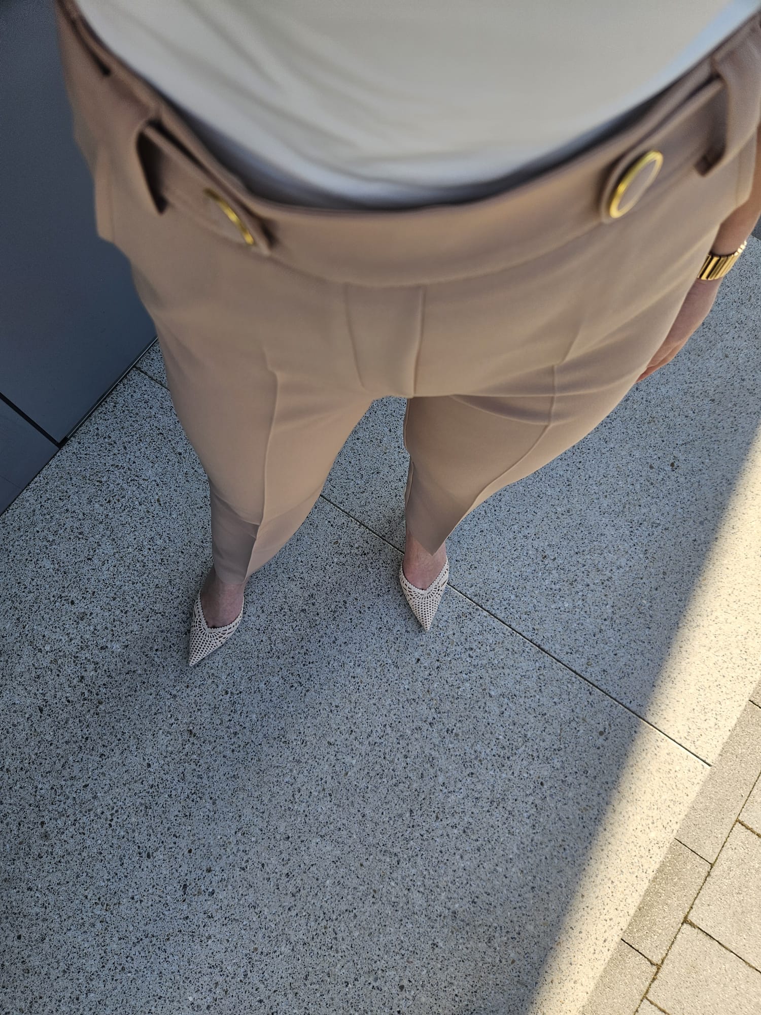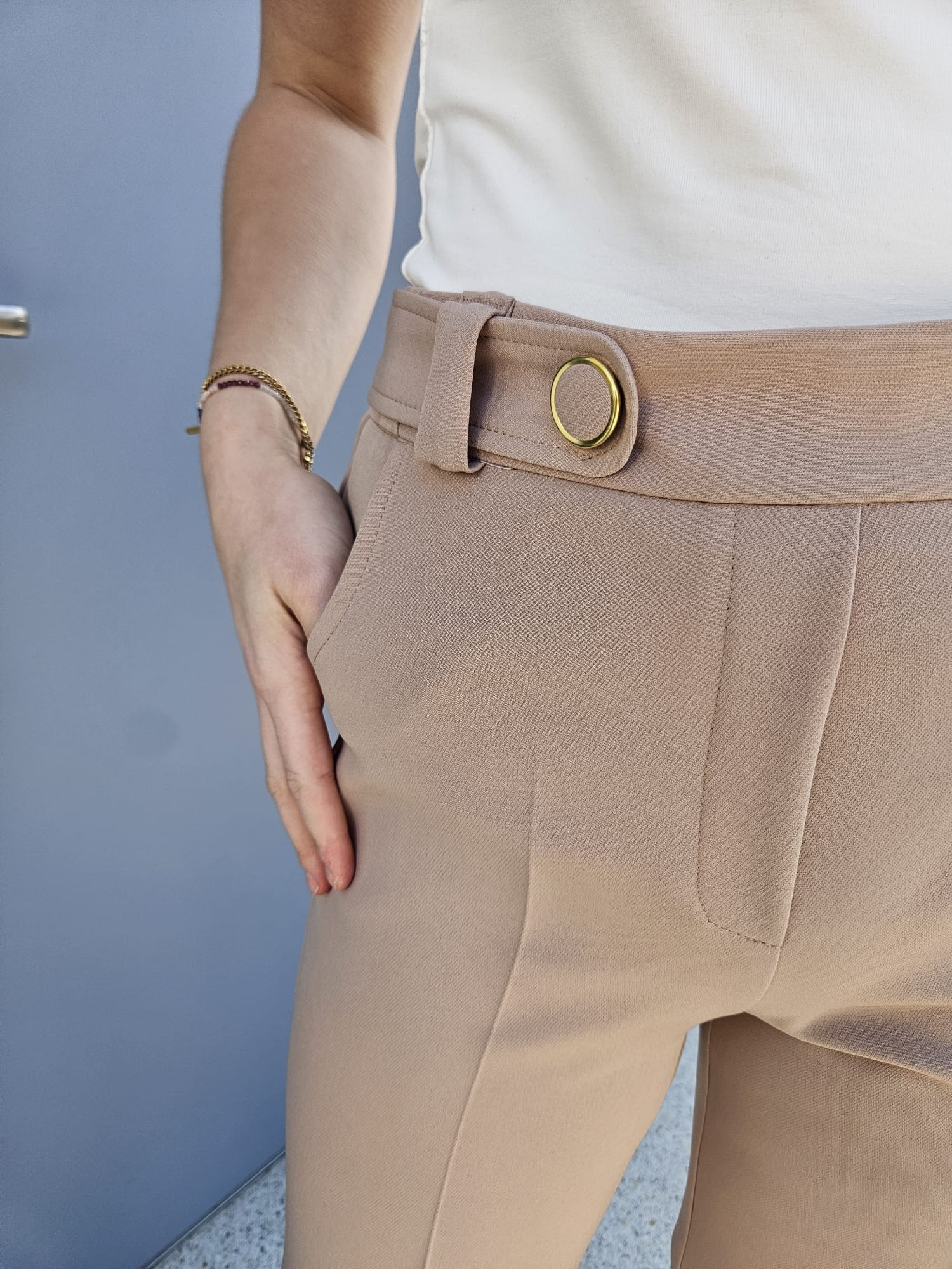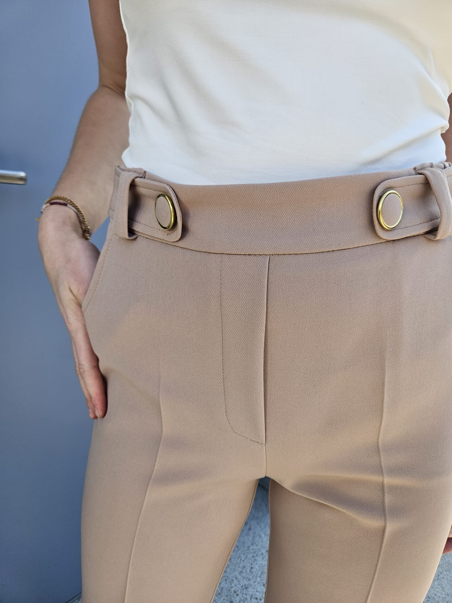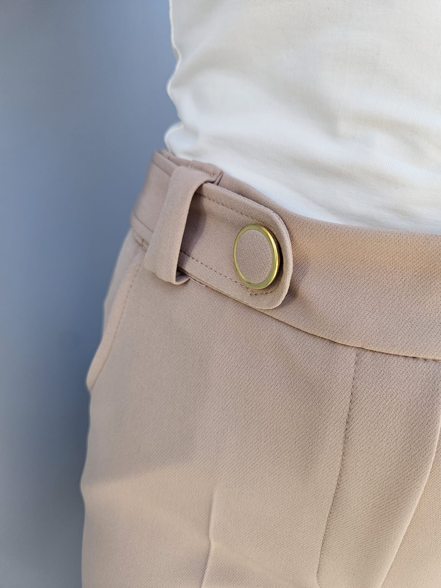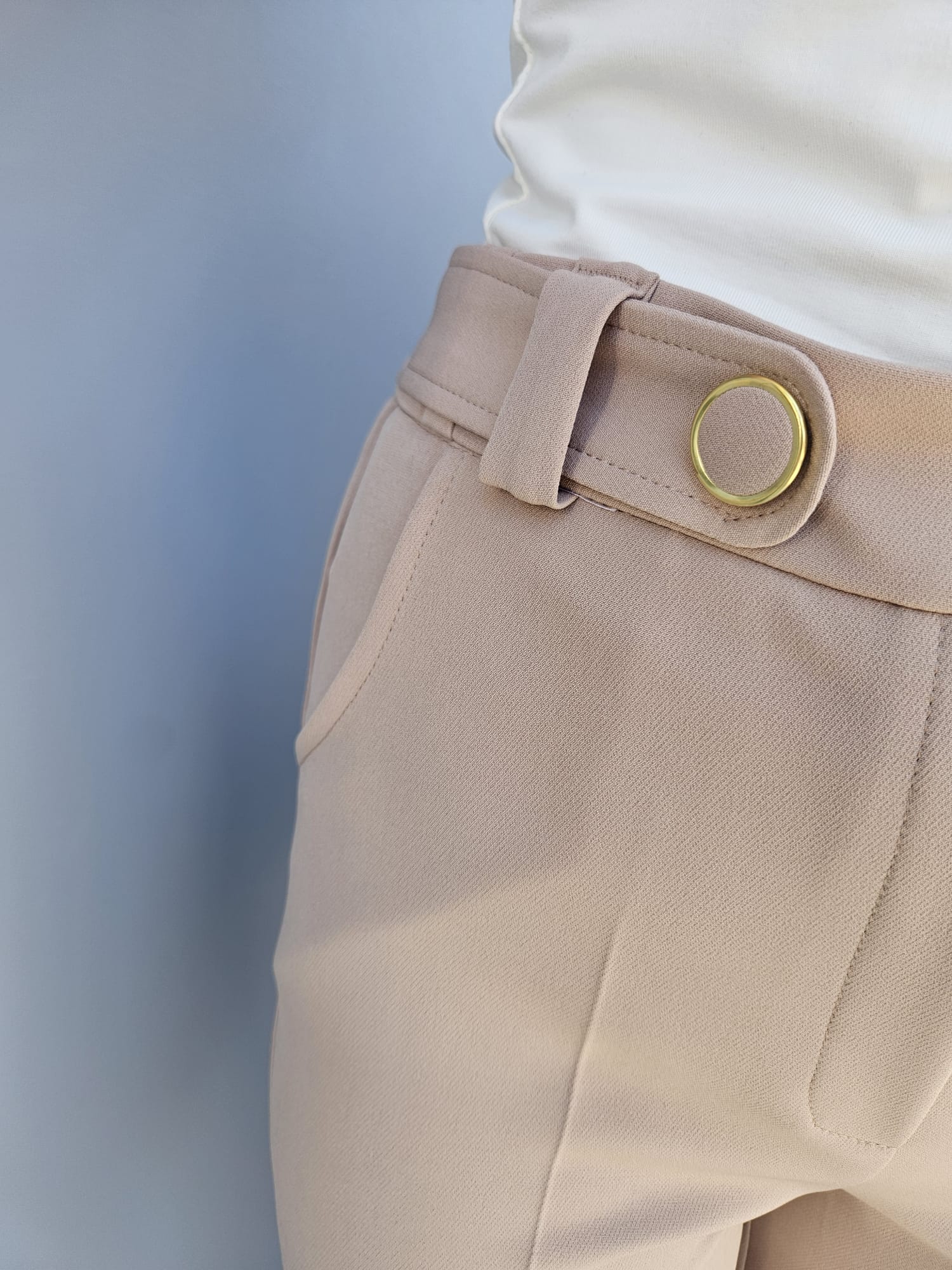 Eleganckie spodnie damskie w beżowym odcieniu z wysokim stanem - Olena 512-695