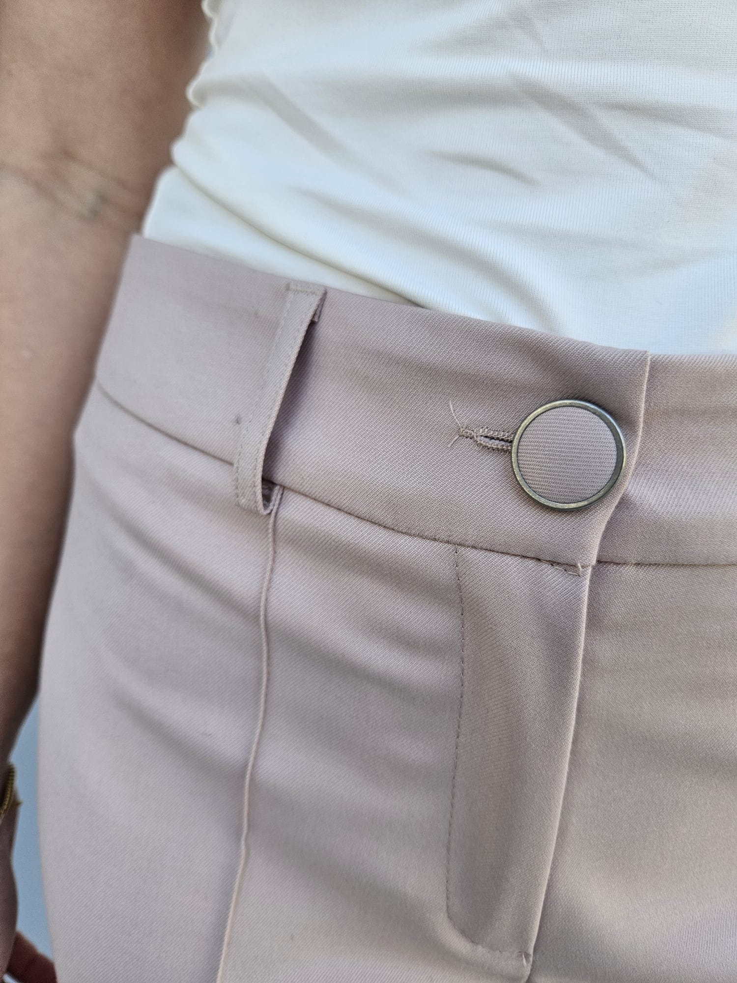 Eleganckie spodnie w kantkę w delikatnym odcieniu pudrowego różu to kwintesencja stylu i nowoczesnej elegancji. Uszyte z wysokiej jakości materiału, prezentują się niezwykle szykownie, łącząc w sobie klasykę z nutą współczesnego designu. Spodnie z wyższym stanem, który pięknie podkreśla talię i optycznie wydłuża nogi, nadając sylwetce smukłości. Prosty krój nogawek w kantkę nadaje spodniom formalnego i jednocześnie nowoczesnego wyglądu. Po bokach wszyte szlufki pozwalają uzupełnić stylizację szykownym paskiem. Całość tworzy stylowy, minimalistyczny element ubioru, który świetnie sprawdzi się w zestawieniu z koszulą, marynarką lub eleganckim swetrem.