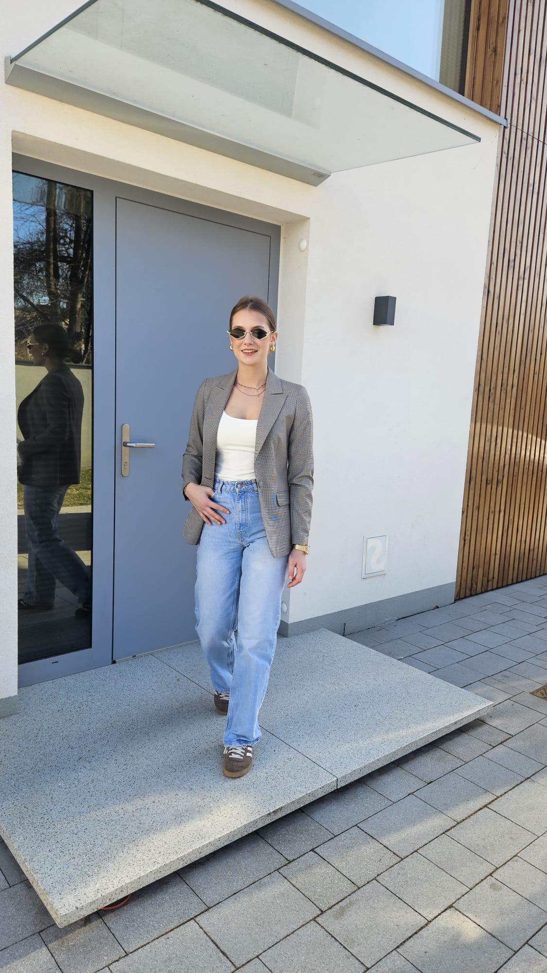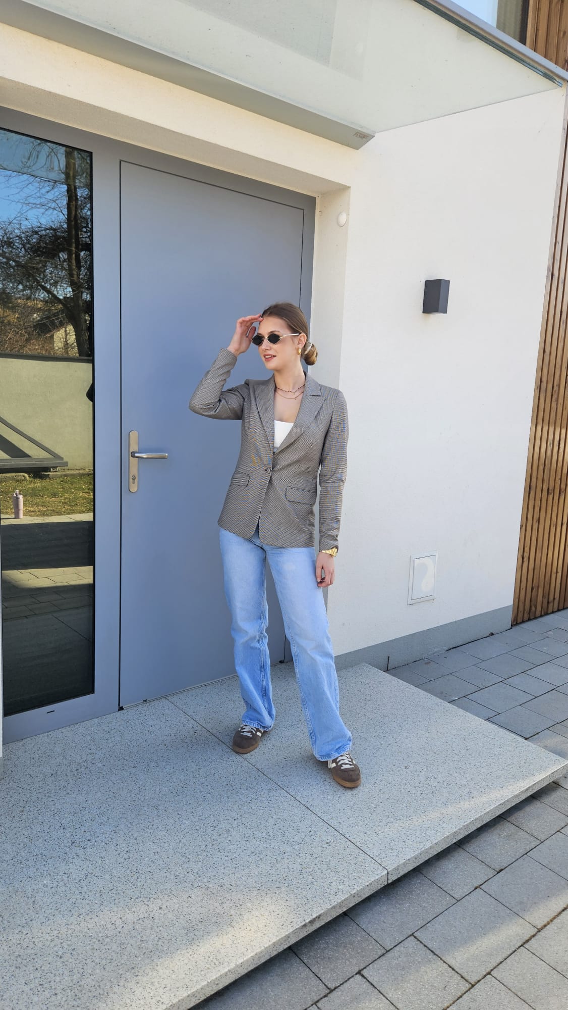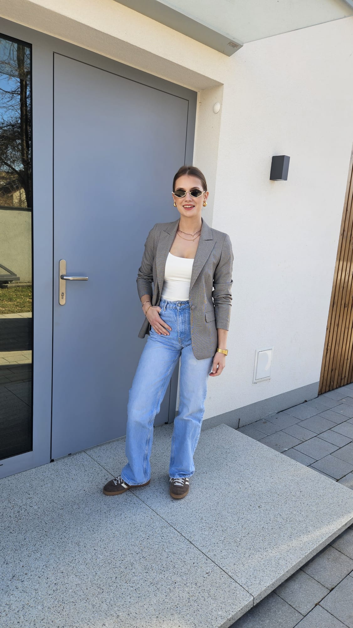 Klasyczny damski żakiet w odcieniu szarości zdobiony brązową pepitką to ponadczasowy element garderoby, który łączy elegancję z subtelnym wzornictwem. Starannie skrojony fason pięknie układa się na sylwetce, a zapięcie na guzik w tym samym kolorze podkreśla spójny charakter całości. Stonowana kolorystyka sprawia, że żakiet doskonale komponuje się zarówno z klasycznymi, jak i nowoczesnymi stylizacjami – świetny wybór do pracy, spotkań biznesowych czy eleganckich zestawów na co dzień.