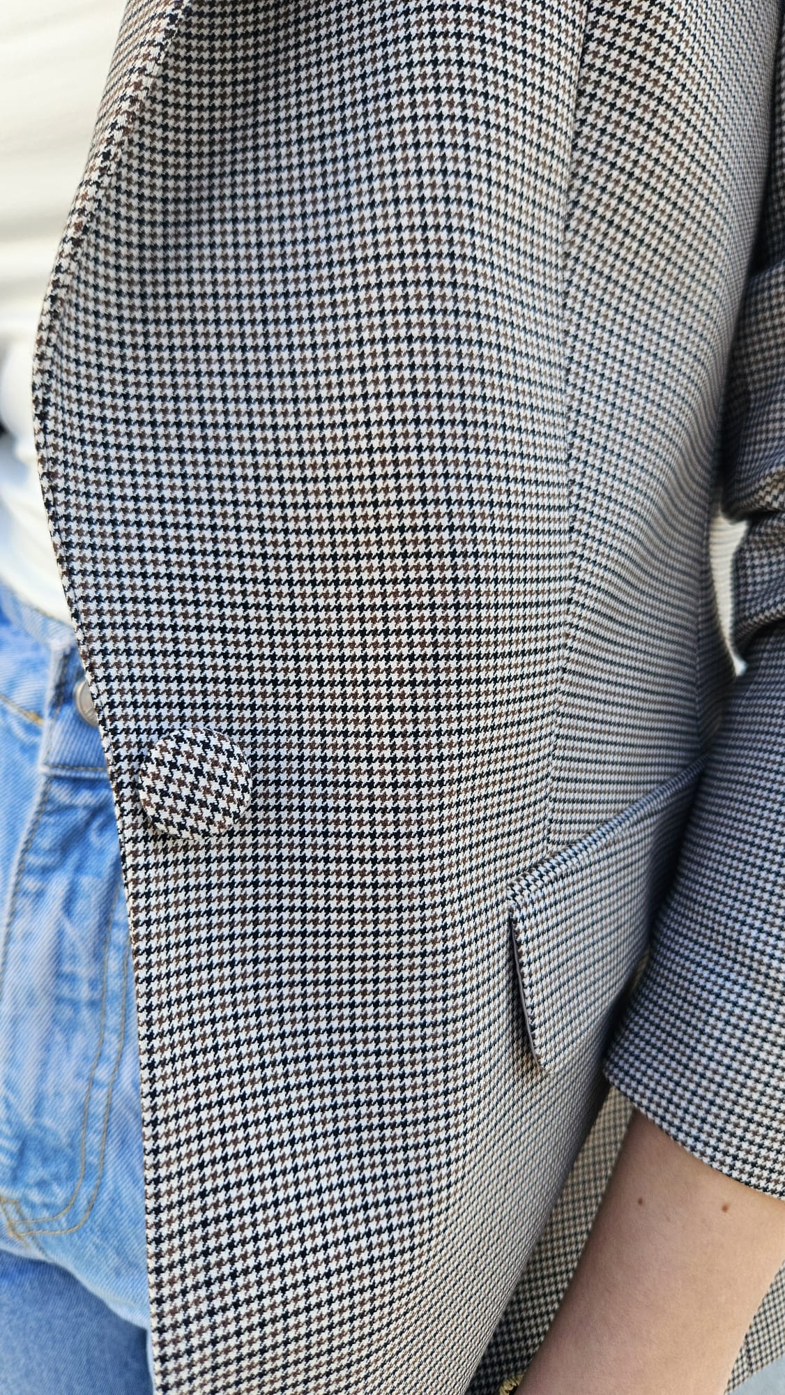 Klasyczny żakiet damski w czarno-brązową pepitkę - Bogusia 938